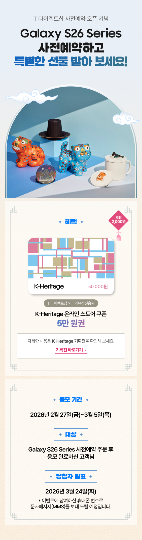 ‘Galaxy S26 Series 사전예약 특별 선물’ 참여를 위해, 본인의 개인정보를 SK텔레콤 주식회사가 수집·이용하는 것에 동의합니다.