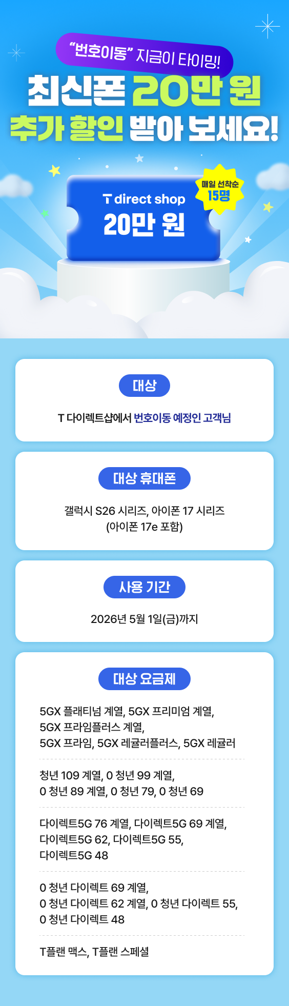 * 이 쿠폰은 T 다이렉트샵에서 휴대폰 구매 시 사용 가능합니다.